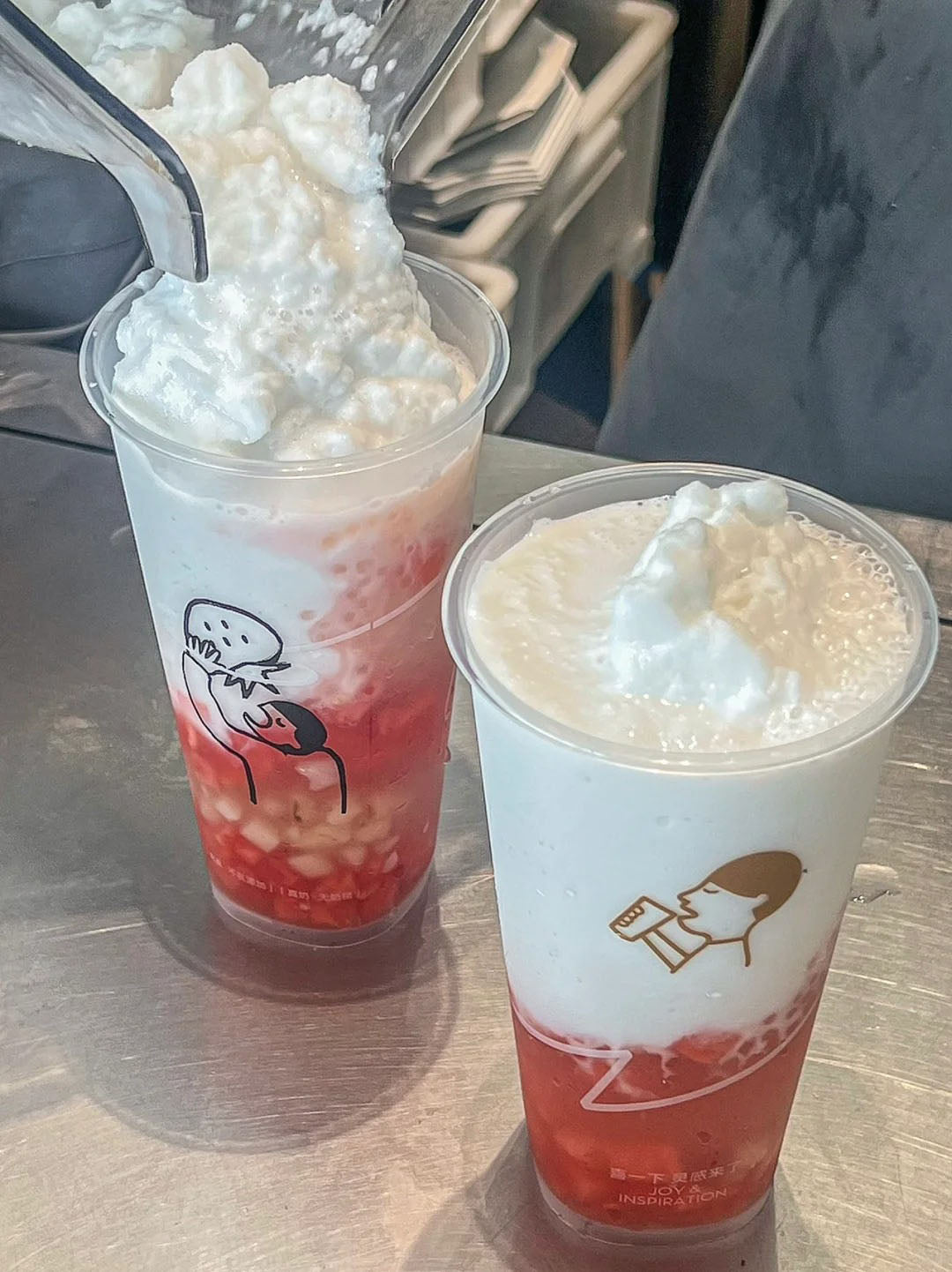 因為加了雙倍果肉,所以第一口就吸到了滿滿的荔枝果肉超滿足!!西米露的顆粒很小 很絲滑,在嘴裡和荔枝果肉、爆爆珠一起反應,荔枝的香氣若隱若現 與生椰的混合恰到好處 ; 生椰的味道比較淡 這奠定了整杯奶茶的基調就是比較偏淡泊、隨性。
